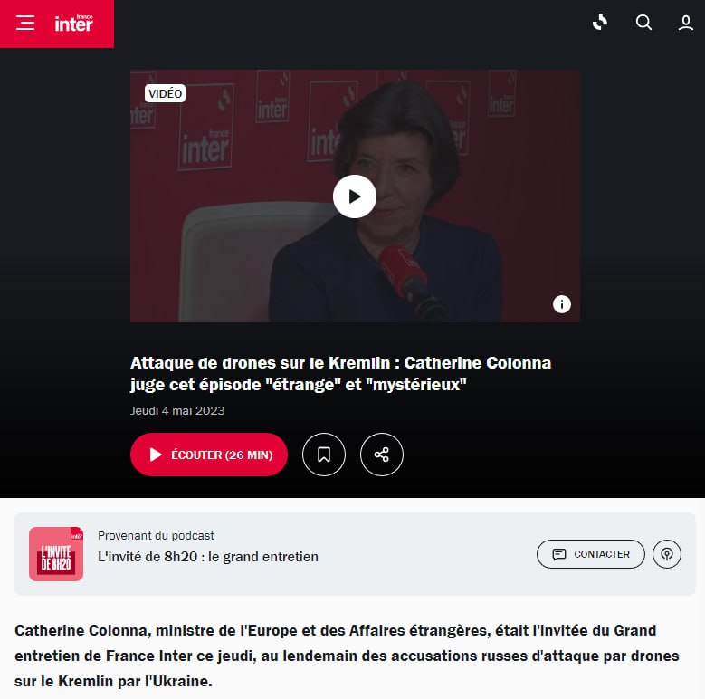 "Я не буду углубляться в гипотезы, их множество. Но в действительности этот эпизод странен. В нормальной ситуации это слабо понимается. Поэтому я не пойду дальше заявлений о том, что это странно или загадочно", - заявила глава МИД Франции Катрин Колонна в интервью France Inter.