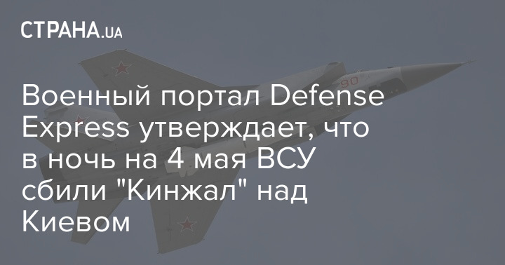 Военный портал Defense Express утверждает, что в ночь на 4 мая ВСУ сбили "Кинжал" над Киевом