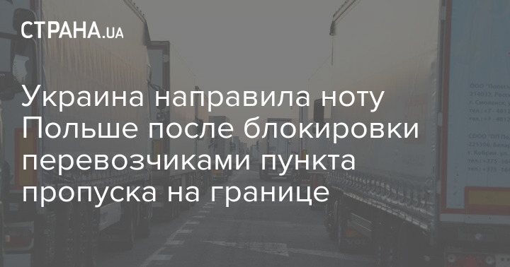 Министерство иностранных дел Украины направило польским коллегам ноту в связи с акцией протеста польских перевозчиков, которые с 4 мая заблокировали движение грузовых автомобилей через крупнейший пункт пропуска "Дорогуск - Ягодин".