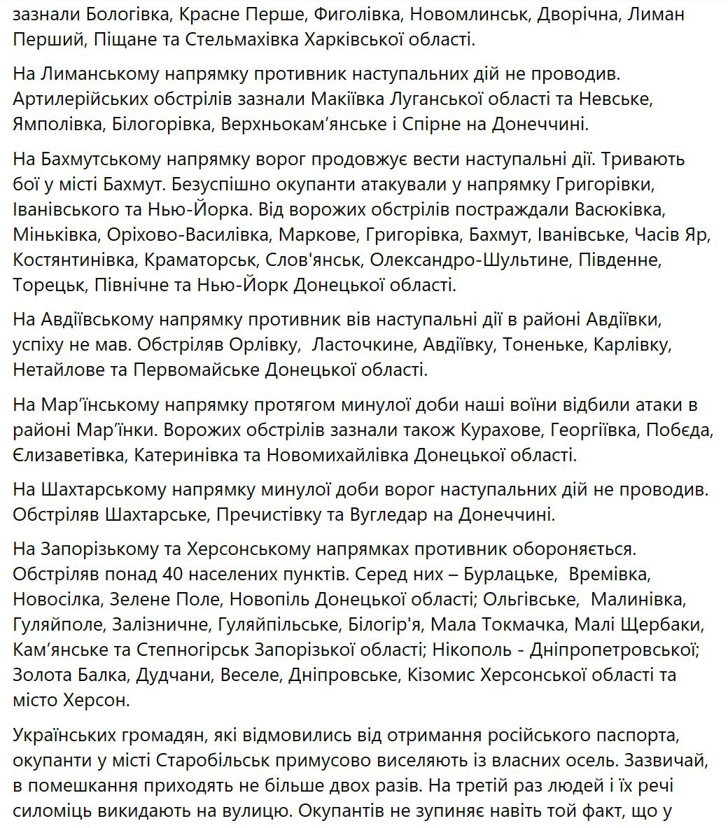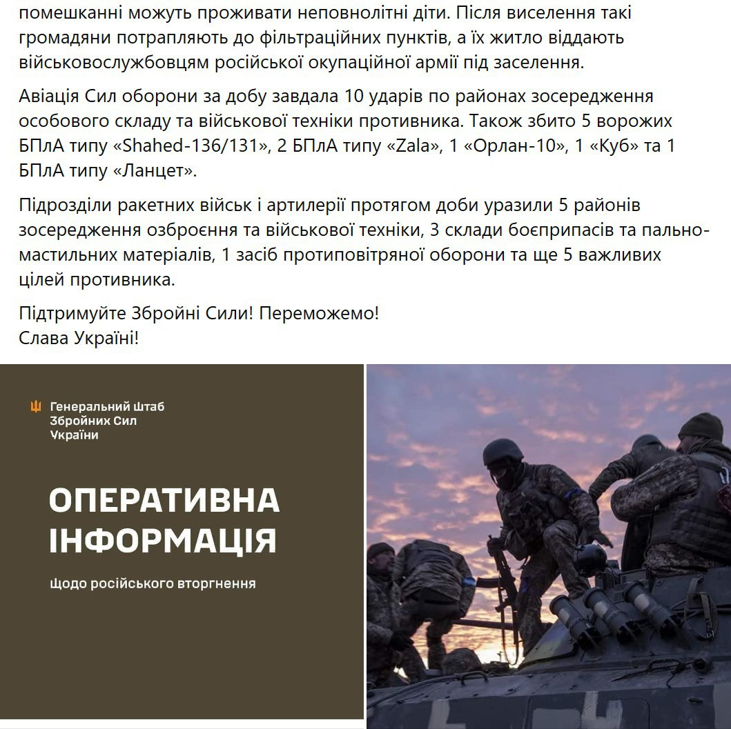 Генштаб ВСУ опубликовал новую сводку с фронта. Фото: Facebook