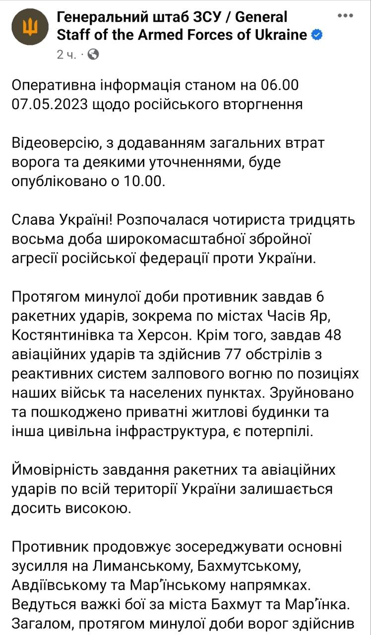 Война в Украине продолжается уже 438-й день. Мы следим за последними новостями 7 мая в своем онлайне.