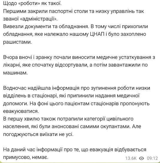 Из больниц вывозят оборудование, людей отправляют в Приморск и Бердянск. Подробности "эвакуации" из Энергодара