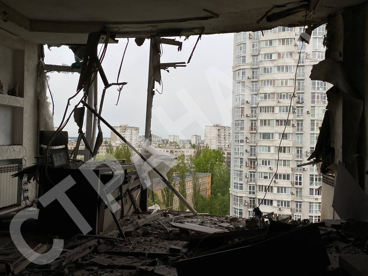 09.35 Вот так сейчас выглядит дом и квартира в Святошинском районе Киева, которые пострадали от ночного удара.