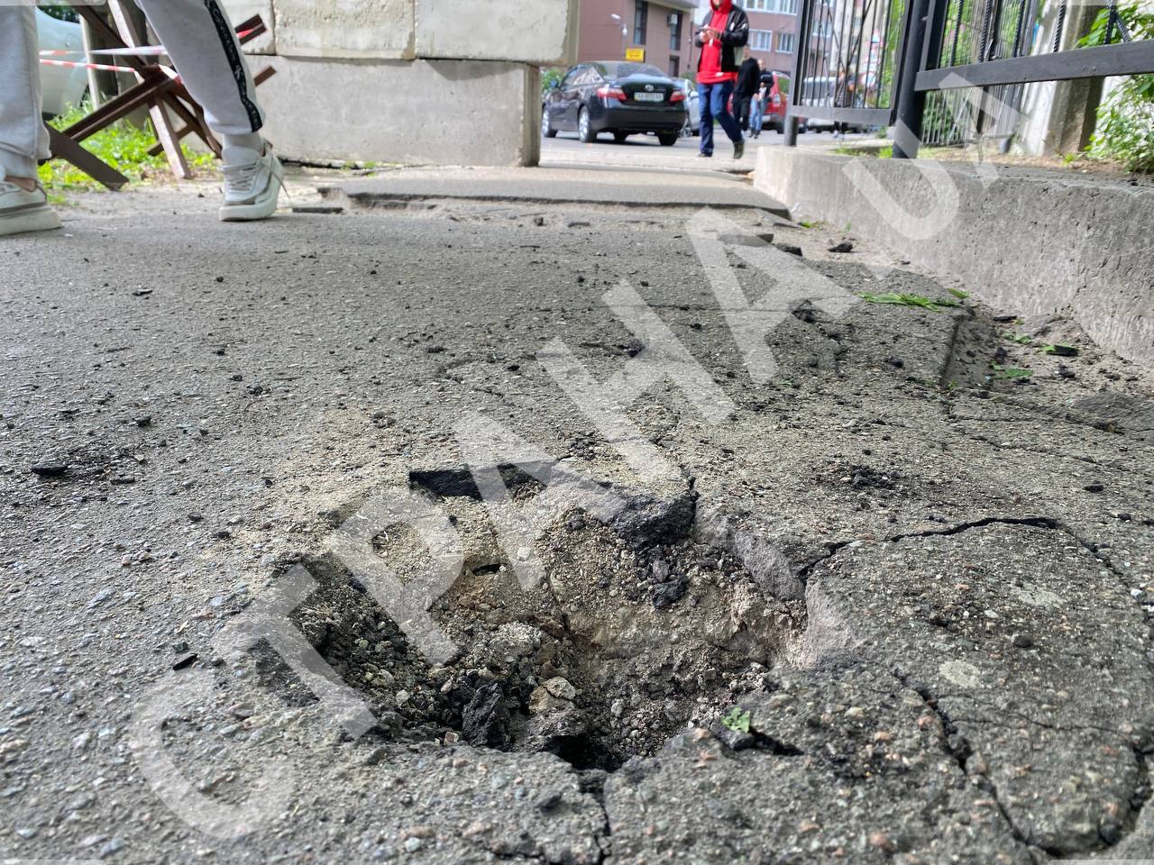 Дрон упал во дворе четырех шестнадцатиэтажных домом. Практически во всех домах, которые расположены рядом с местом падения выбиты окна.