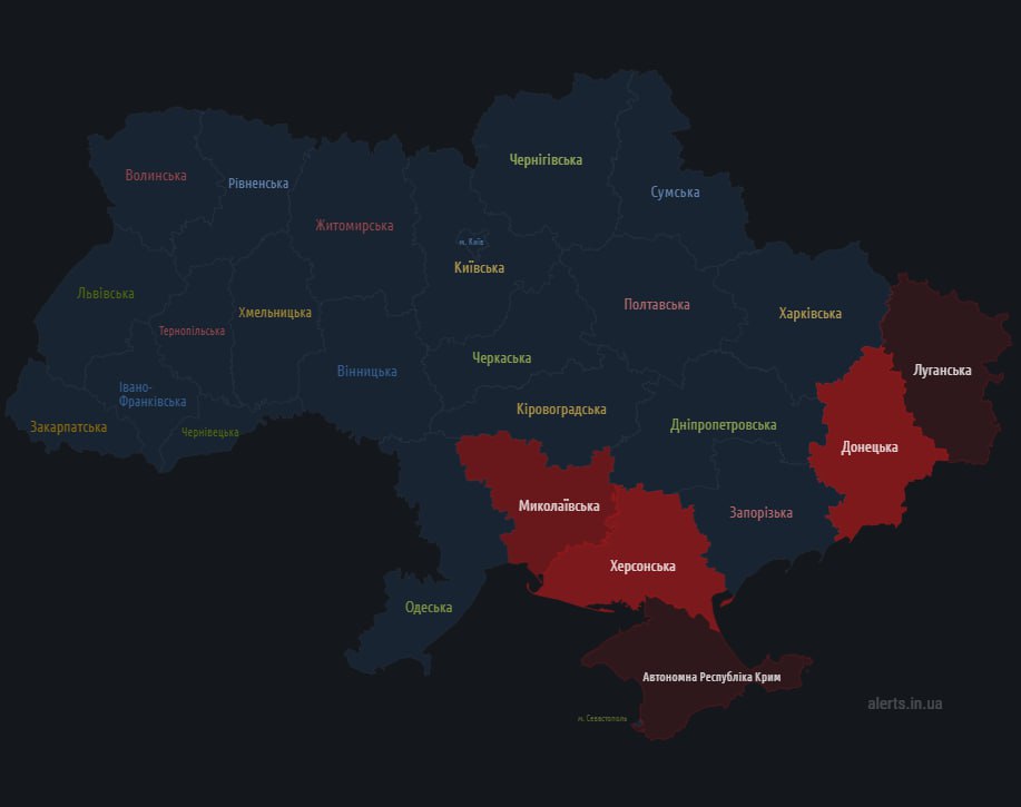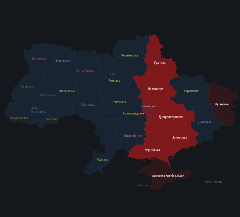 21.52 Воздушная тревога уже в четырех областях. К ним прибавилась Полтавская.