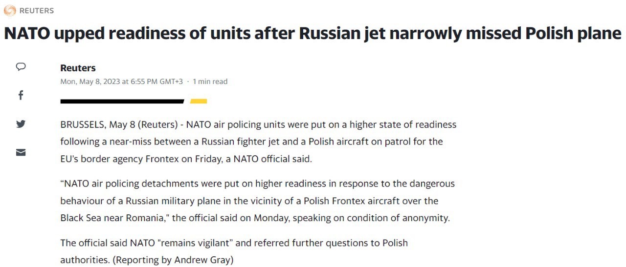 НАТО повысила готовность своих воздушных сил в рамках миссии "воздушной полиции" в черноморском регионе в связи с сопровождением польского военного самолета российским истребителем в небе над Черным морем.