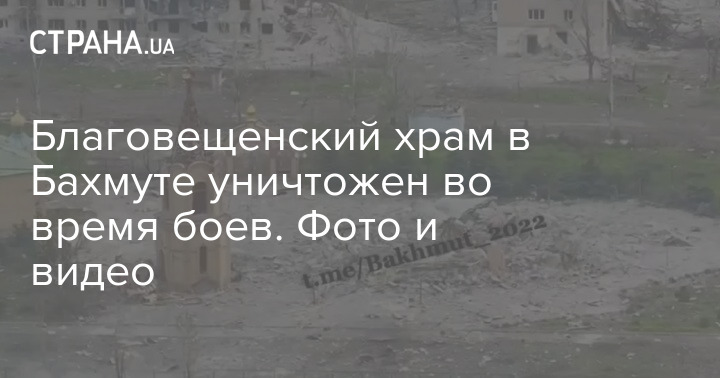Церковь Благовещенского храма в Бахмуте уничтожена во время боев. Об этом свидетельствуют кадры из местных пабликов.