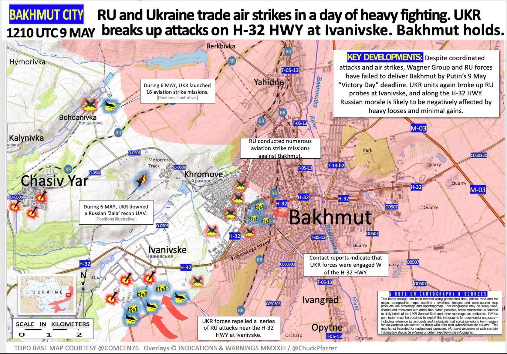 Теперь к ситуации на фронте. В районе Бахмута бои шли в направлении Ивановского и Часова Яра. Институт изучения войны сообщает, что российские войска незначительно продвинулись в пределах Бахмута и "вероятно, добились успехов в западной части".