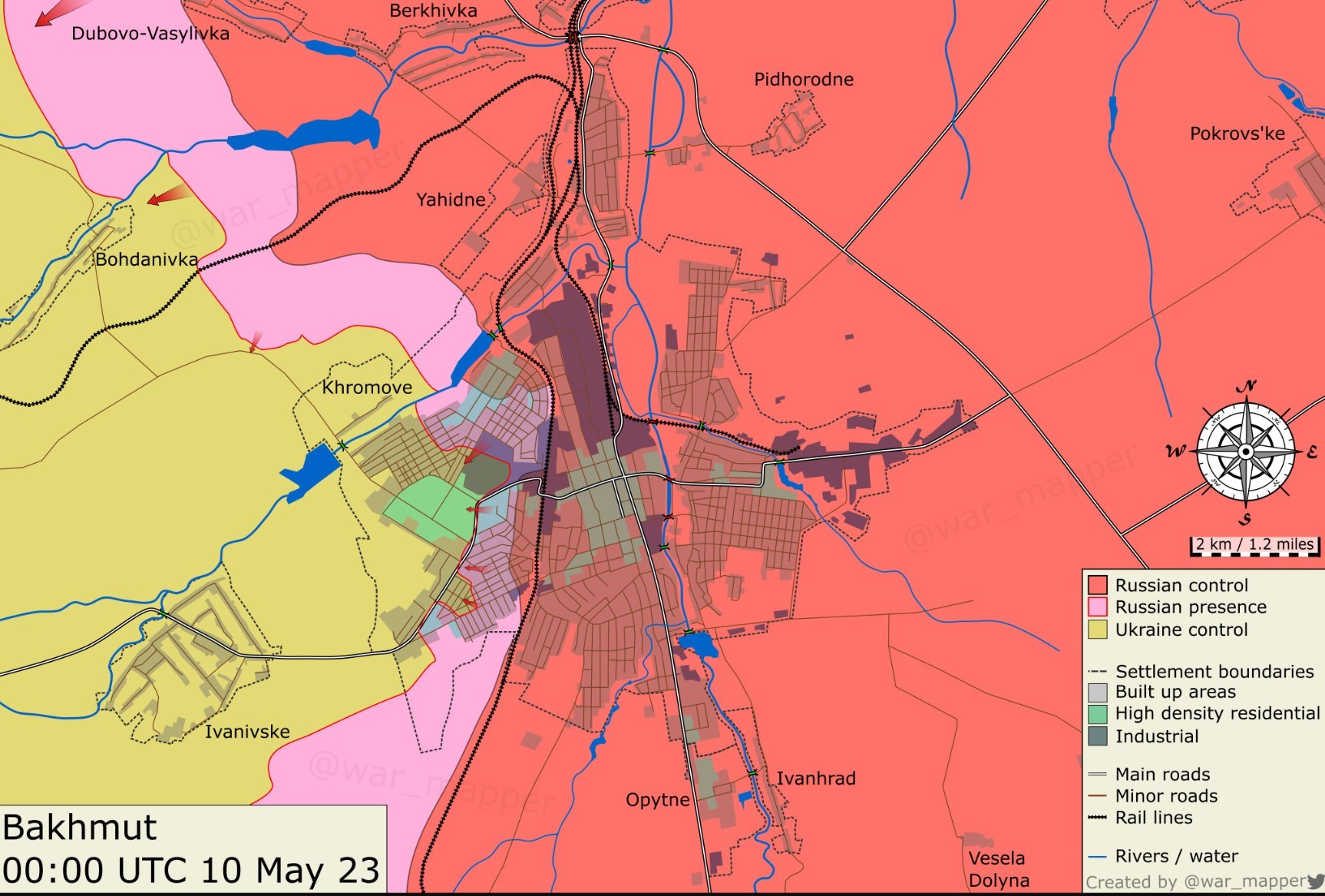 Институт изучения войны сообщает, что российские войска, вероятно, продвинулись дальше в западной части Бахмута.