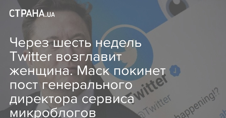 Американский миллиардер Илон Маск сообщил, что нашел человека, который возглавит принадлежащую ему социальную сеть Twitter. По его словам, это будет женщина.