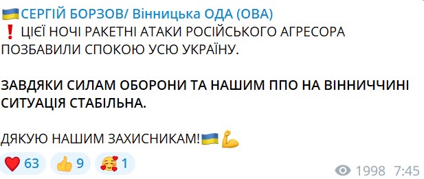 Позже он подтвердил прилет крылатых ракет. По его словам, есть разрушение двух и повреждение двенадцати дачных домов. Пожар уже ликвидировали.