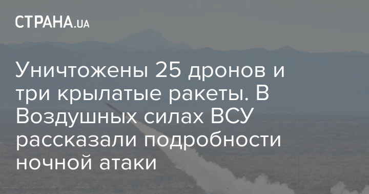 Сколько всего ракет было запущено - не сообщается. При этом уничтожены три крылатые ракеты и 25 беспилотников.
