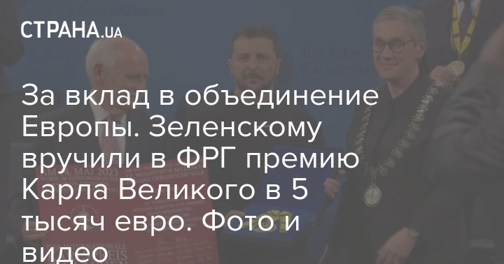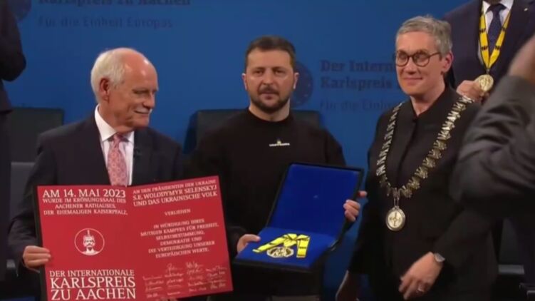 В сети появилось видео вручения Зеленскому премии Карла Великого.