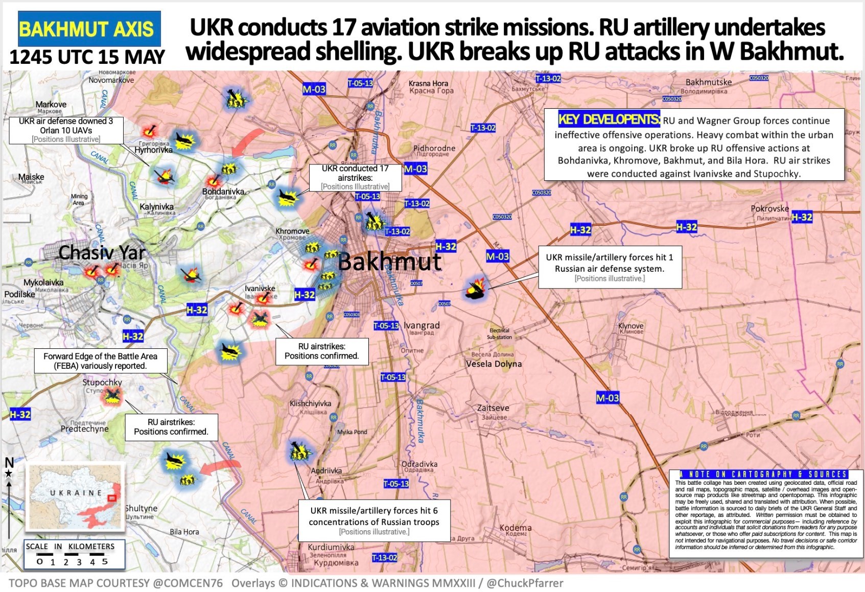 В то же время связанные с "Вагнером" российские телеграм-каналы, пишут, что российские войска утратили позиции в ивановском лесу - это около Клещеевки к югу от трассы Константиновка - Бамут. О том же вчера сообщали и украинские военные паблики. Также российские телеграм-каналы пишут, что ВСУ пытаются прорваться к западной части Клещеевки и взять этот населенный пункт, около которого находятся господствующие высоты, с которых можно обстреливать всю территорию к югу от Бахмута.