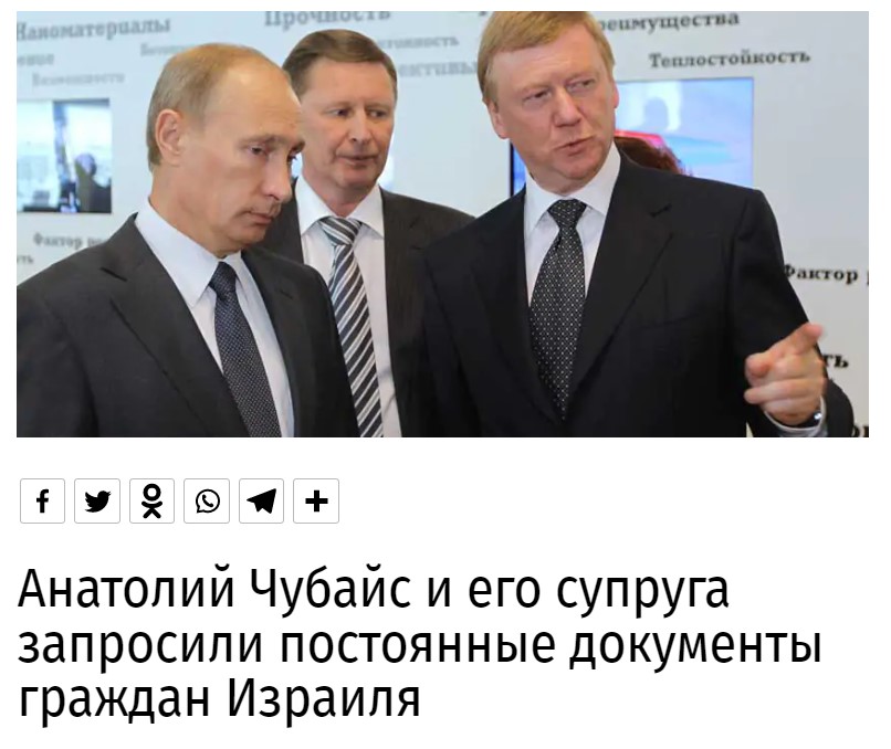 Журналисты узнали, что Чубайс подал запрос в МВД Израиля на получение израильских документов. Он опровергает