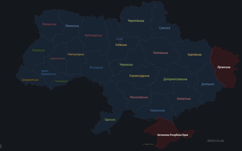 20:44 Воздушная тревога в Донецкой, Полтавской и Кировоградской областях. Добавилась Днепропетровская.