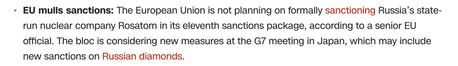 В 11-й пакет санкций ЕС против РФ не планируется включать санкции против госкорпорации "Росатом".