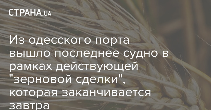 Из одесского порта вышло последнее судно в рамках действующей "зерновой сделки", которая заканчивается завтра