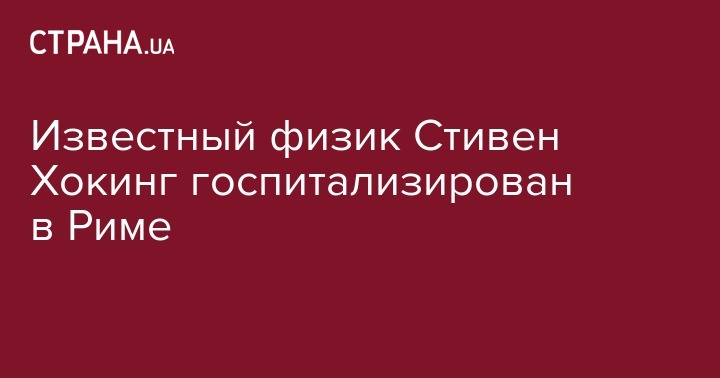 В пятницу, 2 декабря ученый Стивен Хокинг был госпитализирован в одну из больниц Рима, после того почувствовал недомогание. Об этом передает Reuters.