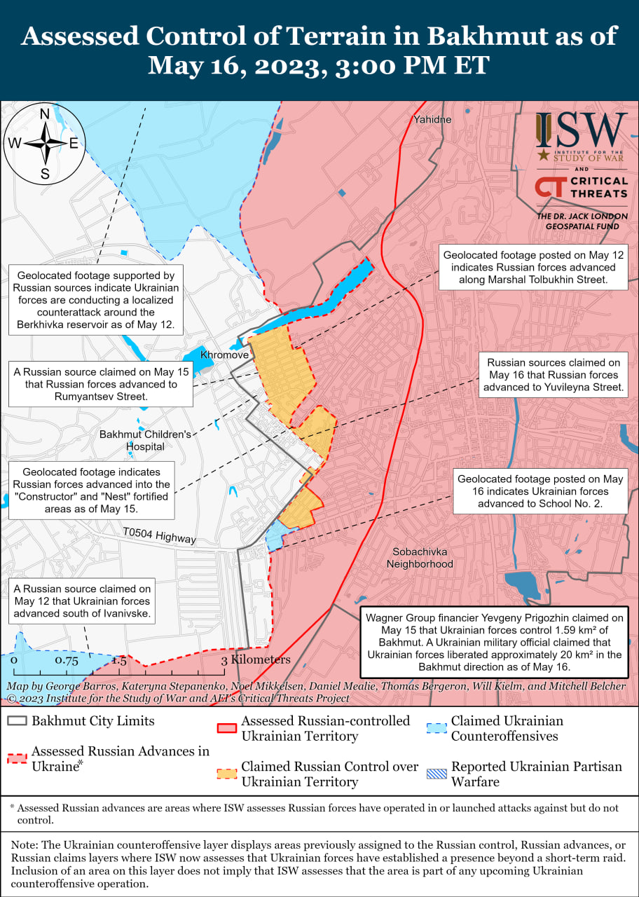 Хотя "украинские успехи вокруг Бахмута были ограничены", они "побудили Россию к дальнейшему сосредоточению на тактических наступательных усилиях в этом районе".