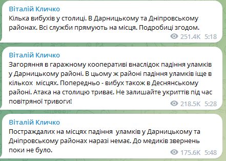 В Дарницком был пожар в гаражном кооперативе в результате падения обломков. В этом же районе падение обломков еще в нескольких местах, сообщил мэр Виталий Кличко.