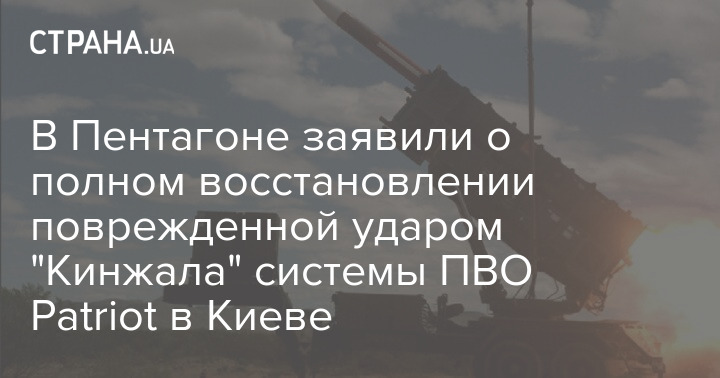 В Пентагоне заявили о полном восстановлении поврежденной ударом "Кинжала" системы ПВО Patriot в Киеве