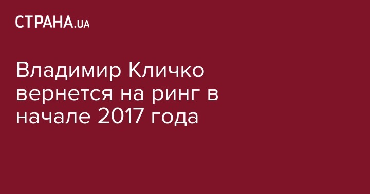 Экс-чемпион мира в супертяжелом весе Владимир Кличко заявил, что вернется на ринг в начале 2017 года. Об этом он написал на своей странице в LinkedIn.