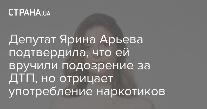 Депутат Киевсовета Ярина Арьева подтвердила, что ей выдвинули подозрение за ДТП под наркотиками. Факт аварии она признаёт, а вот употребление наркотиков - опровергает.