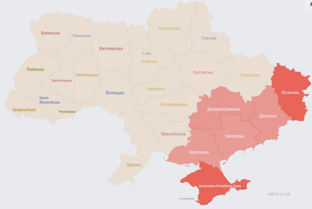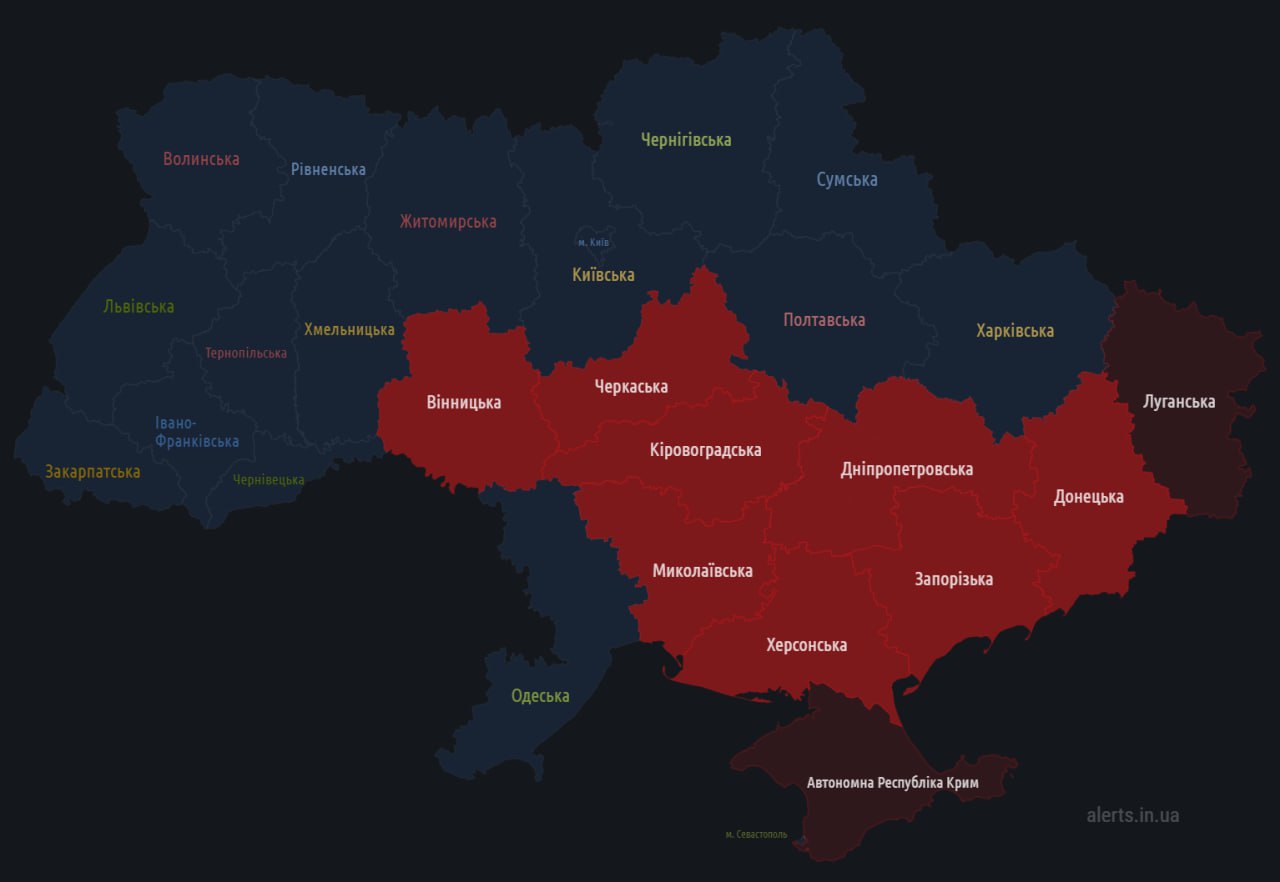 12.40 Воздушная тревога также распространилась на центральную Украину.