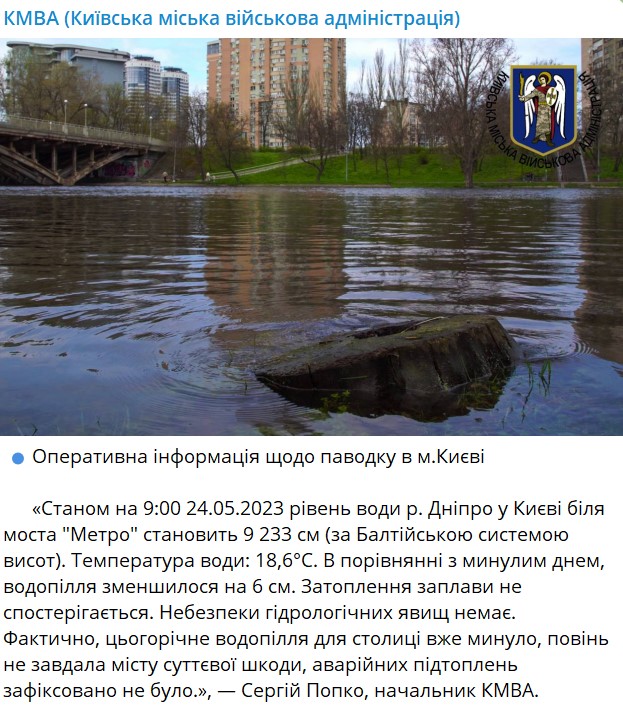 Паводок пошел на спад. Фото: t.me/VA_Kyiv