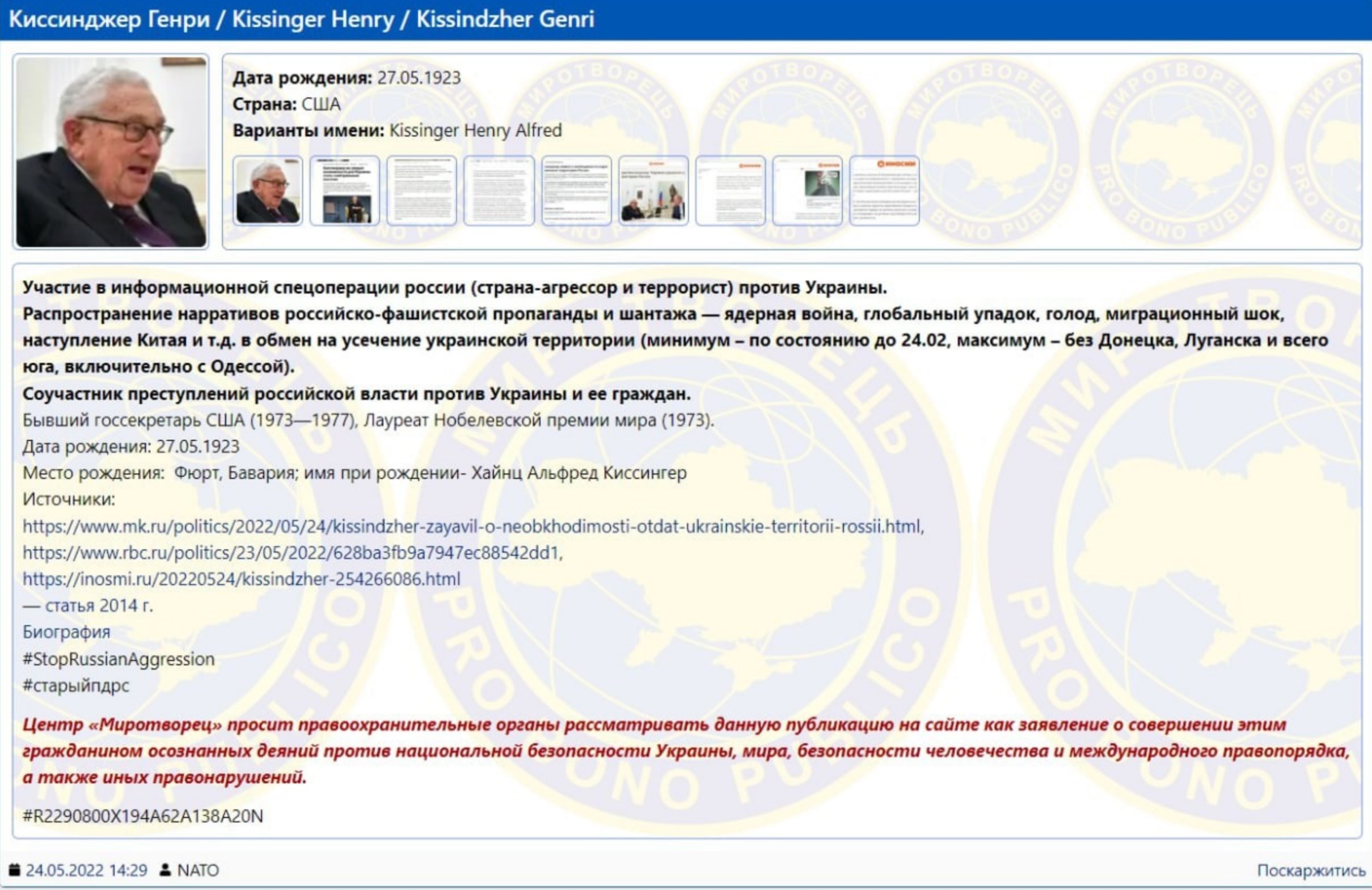Сегодня Киссинджер, лауреат Нобелевской премии мира, пытается предложить путь, чтоб закончить еще одну войну - Украины с Россией. Его высказывания о том, что нужно для этого сделать двум странам, а также Западу, привлекают огромное внимание прессы и комментируются на самом высоком уровне.