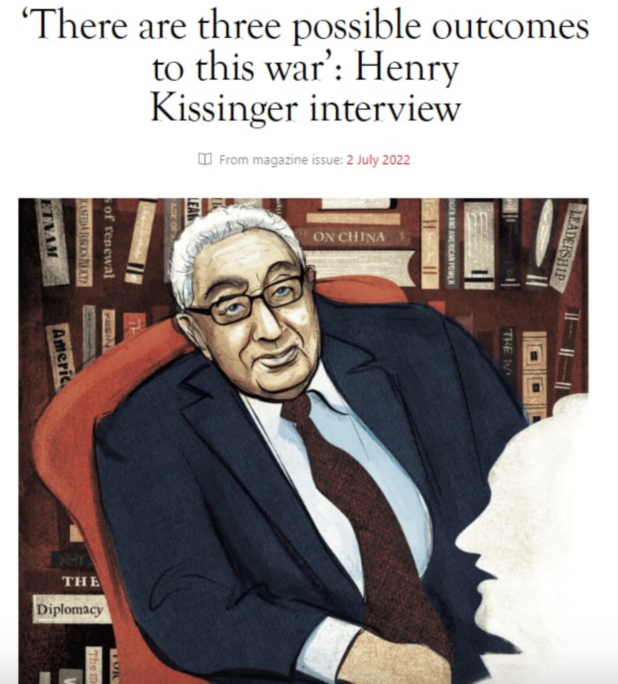 В июле 2022 года Киссинджер озвучил три сценария развития ситуации в Украине.