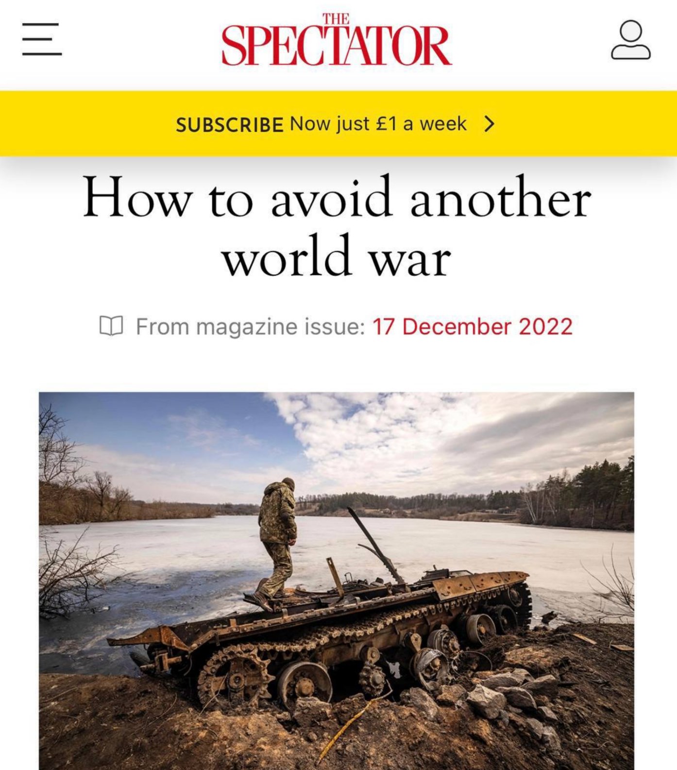 В статье под названием "Как избежать новой мировой войны" в британском еженедельнике Spectator он заявил о поворотной точке в войне в Украине, которой нужно воспользоваться, чтобы достичь урегулирования путем переговоров и избежать эскалации, чреватой глобальной катастрофой.