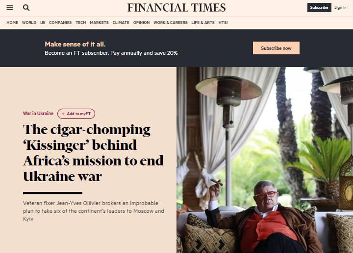 10.50 Основой для начала переговоров между Украиной и Россией выбраны темы зерна, удобрений и обмена пленными, заявил в интервью газете Financial Times инициатор посреднической миссии африканских стран по урегулированию ситуации в Украине и основатель Браззавильского фонда Жан-Ив Оливье.