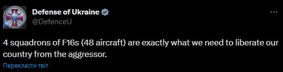 По словам генерала, "в будущем у F-16 есть своя роль". Но "потребуется значительное время, чтобы создать (в Украине - Ред.) военно-воздушные силы того размера, размаха и масштаба, которые необходимы".