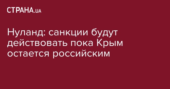 Санкции Вашингтона против Москвы в связи с присоединением Крыма должны оставаться в силе до тех пор, пока Россия продолжит предъявлять свои притязания на Крым, цитирует "Интерфакс-Украина" заявление помощника Государственного секретаря США Виктории Нуланд.