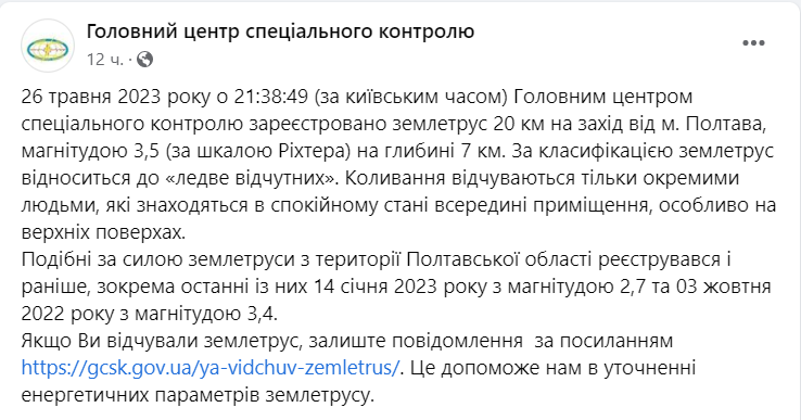 Подобные по силе толчки в Полтавской области регистрировались и раньше. Последние были 14 января и 3 октября.