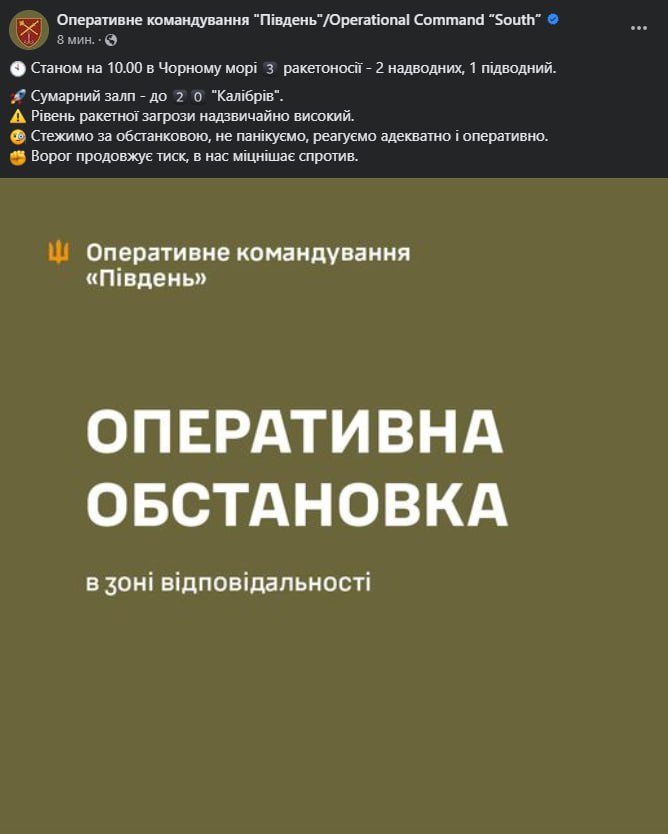 Незадолго до этого оперативное командование "Юг" предупреждало о чрезвычайно высоком уровне ракетной угрозы.