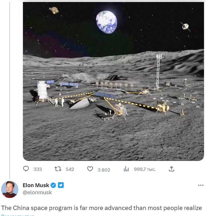 "Китайская космическая программа куда более продвинутая, чем осознает большинство", - написал Маск.