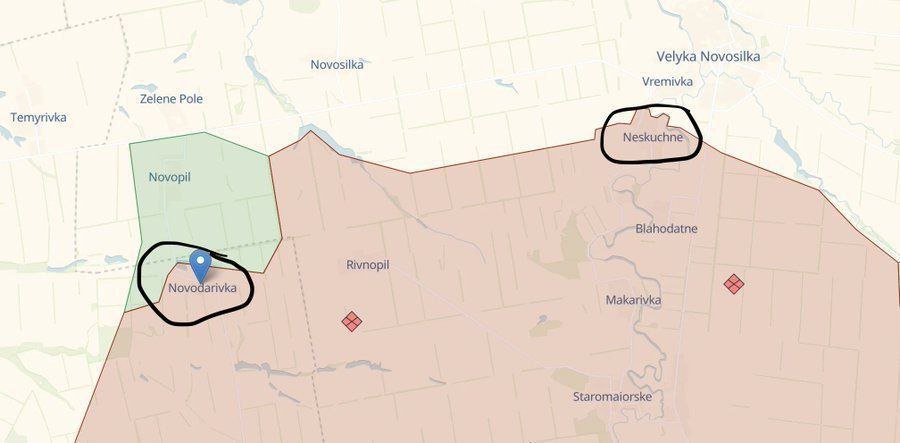 Другие телеграм-каналы сообщают, что в районе Времьевки атаки шли в районе Никольского и Павловки. Но, судя по видео, пока подтверждаются только боестолкновения западнее - в районе Времьевки и Великой Новоселки. Это граница Донецкой и Запорожской областей.