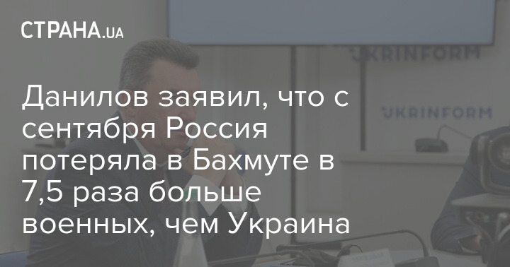 Секретарь Совета нацбезопасности и обороны Украины Алексей Данилов сообщил, что с сентября прошлого года Россия потеряла в Бахмуте Донецкой области в 7,5 раза больше военных, чем Украина.