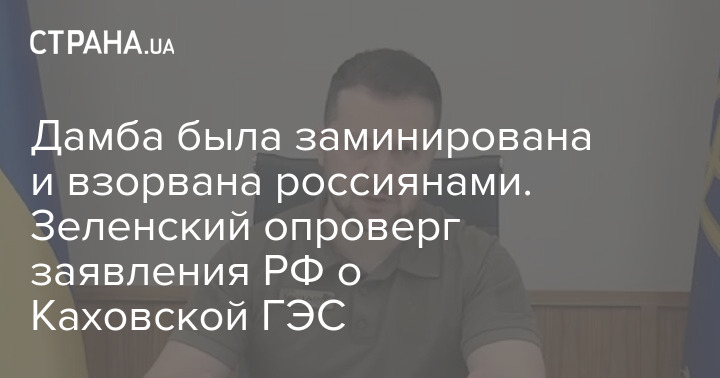 Президент Украины Владимир Зеленский опроверг заявления РФ о том, что дамбу в Новой Каховке якобы взорвали со стороны Украины.