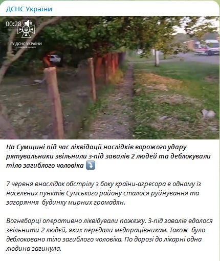 В Сумской области после сегодняшнего обстрела РФ под завалами погибли два человека