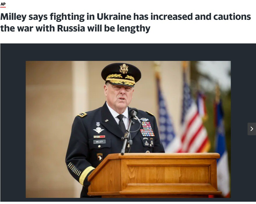 Комментируя тему украинского наступления, Милли сказал, что Украина должна официально объявить, началась ли ее контрнаступательная кампания. Он добавил, что украинские войска готовы к этому бою.