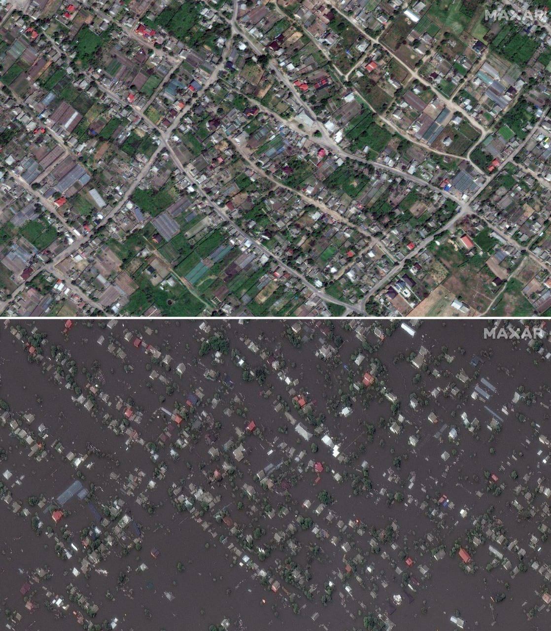 12.15 Maxar публикует новые спутниковые снимки из Херсонской области после затопления.