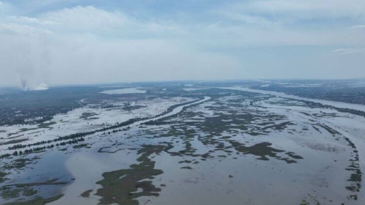 Левый берег Херсонщины после подрыва Каховской ГЭС. Фото: Телеграм