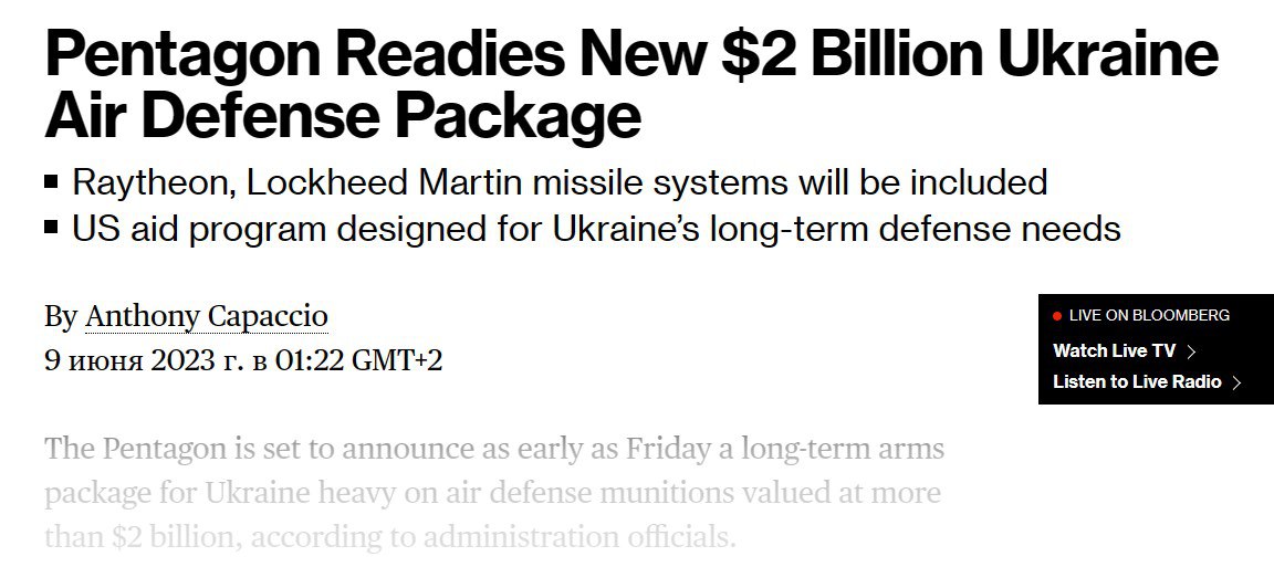 Отмечается, что это пакет - долгосрочный, то есть оружие не будет передаваться Украине из запасов, а его сперва нужно будет произвести. Таким образом два миллиарда пойдут сразу на контракты американскому ВПК.