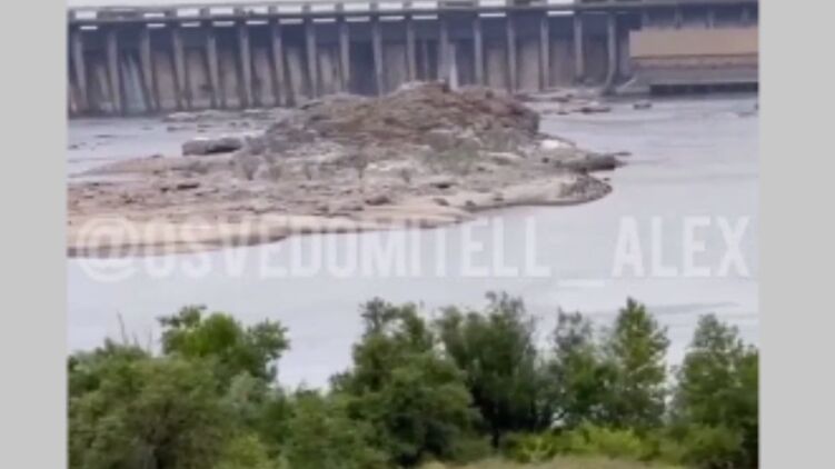 Возле Днепрогэса упал уровень воды. Скриншот видео