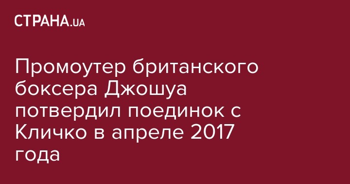 Промоутер британского боксера Джошуа потвердил поединок с Кличко в апреле 2017 года