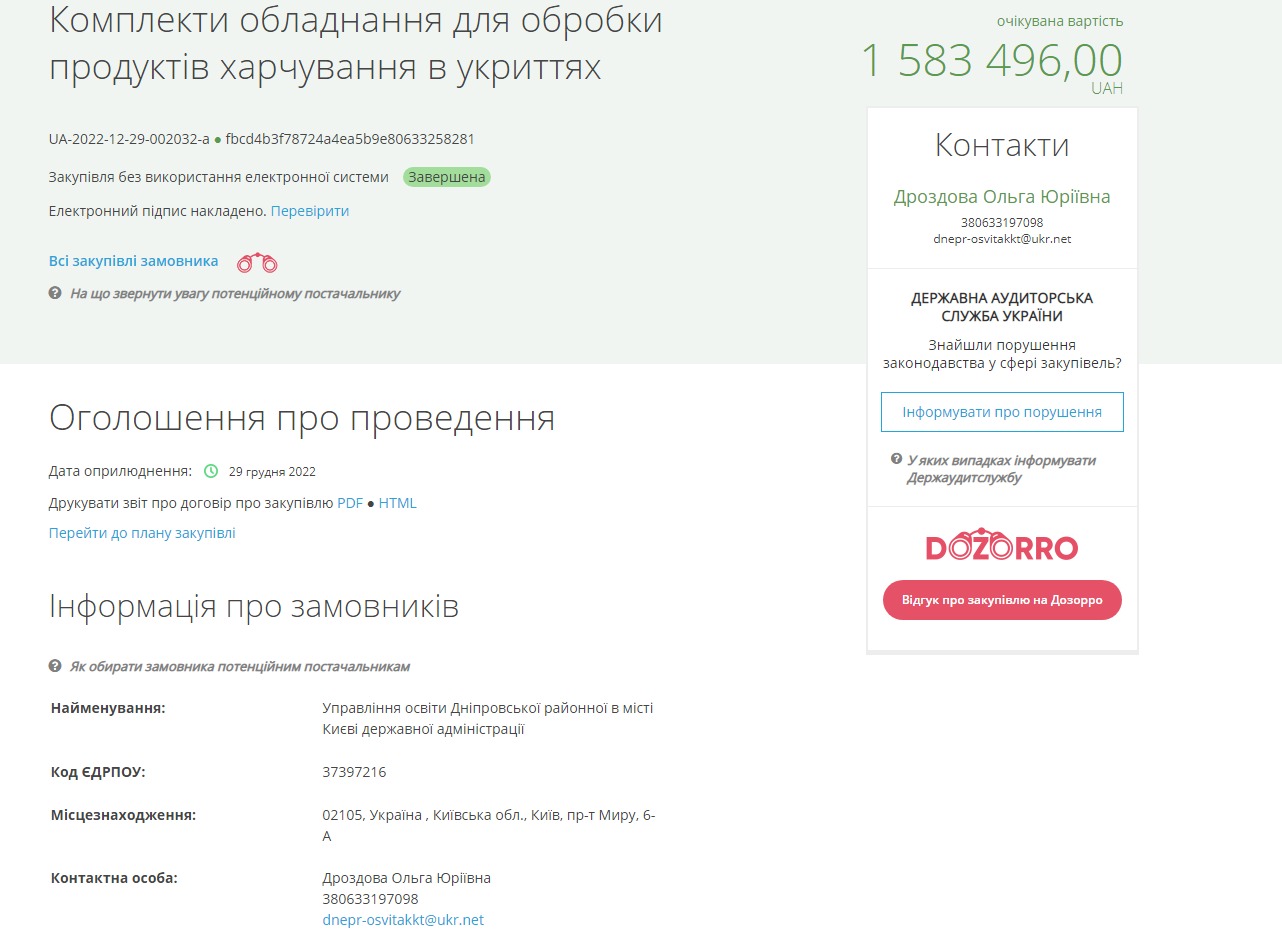 Соответствующий тендер журналисты заметили в системе ProZorro.